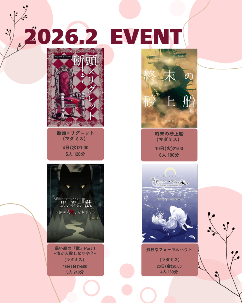 2026.2.20(Mon)20:00開演(19:50までの到着をお願いします)